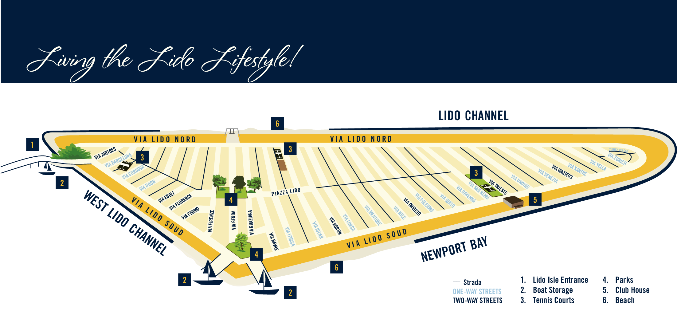 1. Lido Isle Entrance 2. Boat Storage 3. Tennis Courts