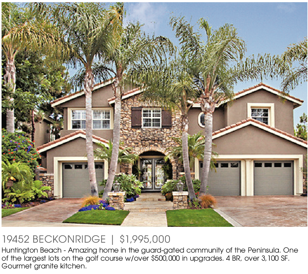 19452 BECKONRIDGE | $1,995,000 Huntington Beach - Amazing home in the guard-gated community of the Peninsula. One of the largest lots on the golf course w/over $500,000 in upgrades. 4 BR, over 3,100 SF. Gourmet granite kitchen.