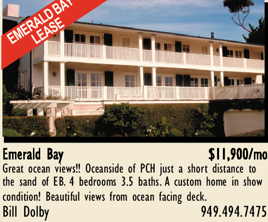 Great ocean views!! Oceanside of PCH just a short distance to the sand of EB. 4 bedrooms 3.5 baths. A custom home in show condition! Beautiful views from ocean facing deck. Bill Dolby 949.494.7475