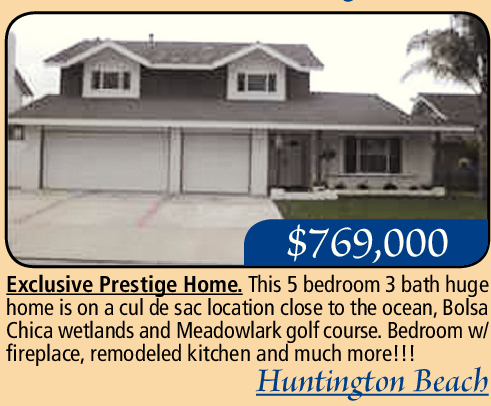 Exclusive Prestige Home. This 5 bedroom 3 bath huge home is on a cul de sac location close to the ocean, Bolsa Chica wetlands and Meadowlark golf course. Bedroom w/ fireplace, remodeled kitchen and much more!!!