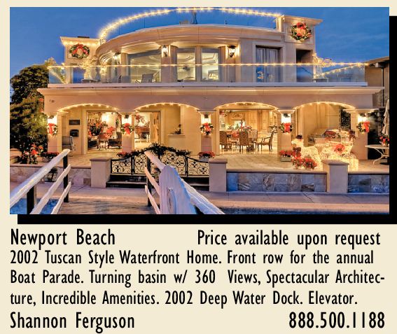 Newport Beach Price available upon request 2002 Tuscan Style Waterfront Home. Front row for the annual Boat Parade. Turning basin w/ 360 Views, Spectacular Architecture, Incrediblee Amenities. 2002 Deep Water Dock. Elevator. Shannon Ferguson 888.500.1188