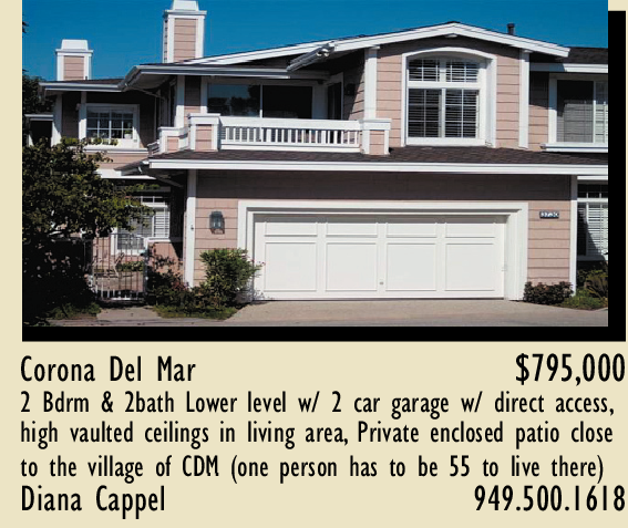Corona Del Mar $795,000 2 Bdrm & 2bath Lower level w/ 2 car garage w/ direct access,