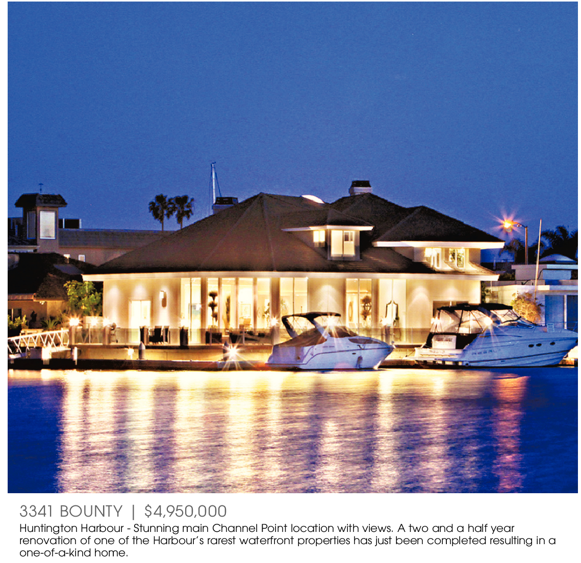 3341 BOUNTY | $4,950,000 Huntington Harbour - Stunning main Channel Point location with views. A two and a half year renovation of one of the Harbour’s rarest waterfront properties has just been completed resulting in a one-of-a-kind home.
