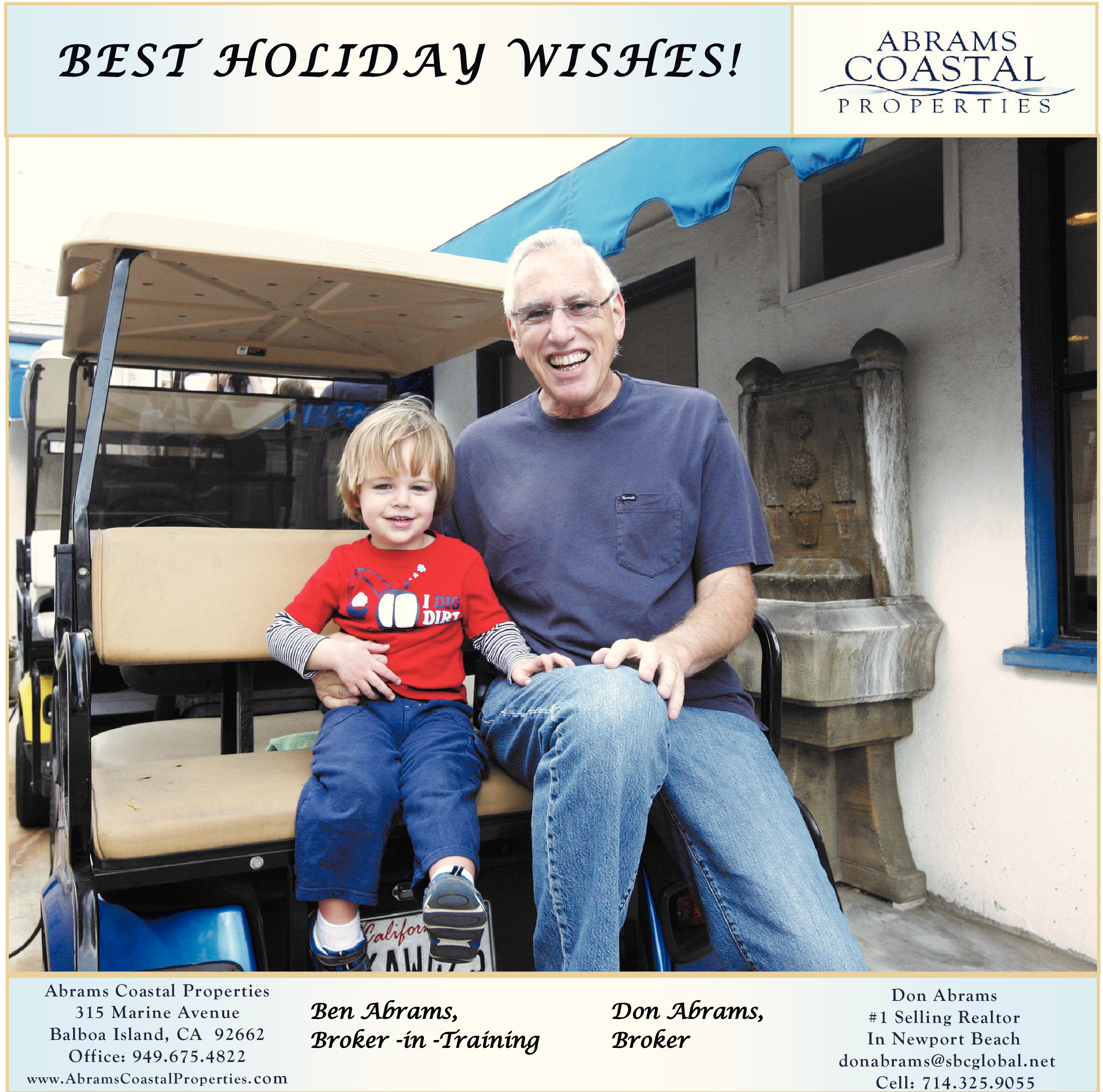 B E S T H O L I D A Y W I S H E S ! Abrams Coastal Properties 315 Marine Avenue Balboa Island, CA 92662 Office: 949.675.4822 www.AbramsCoastalProperties.com Ben Abrams, Broker -in -Training Don Abrams, Broker Don Abrams #1 Selling Realtor In Newport Beach donabrams@sbcglobal.net Cell: 714.325.9055