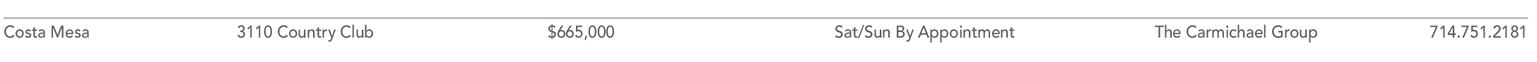 Costa Mesa 3110 Country Club $665,000 Sat/Sun By Appointment The Carmichael Group 714.751.2181