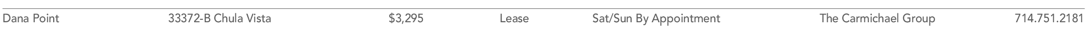Dana Point 33372-B Chula Vista $3,295 Lease Sat/Sun By Appointment The Carmichael Group 714.751.2181