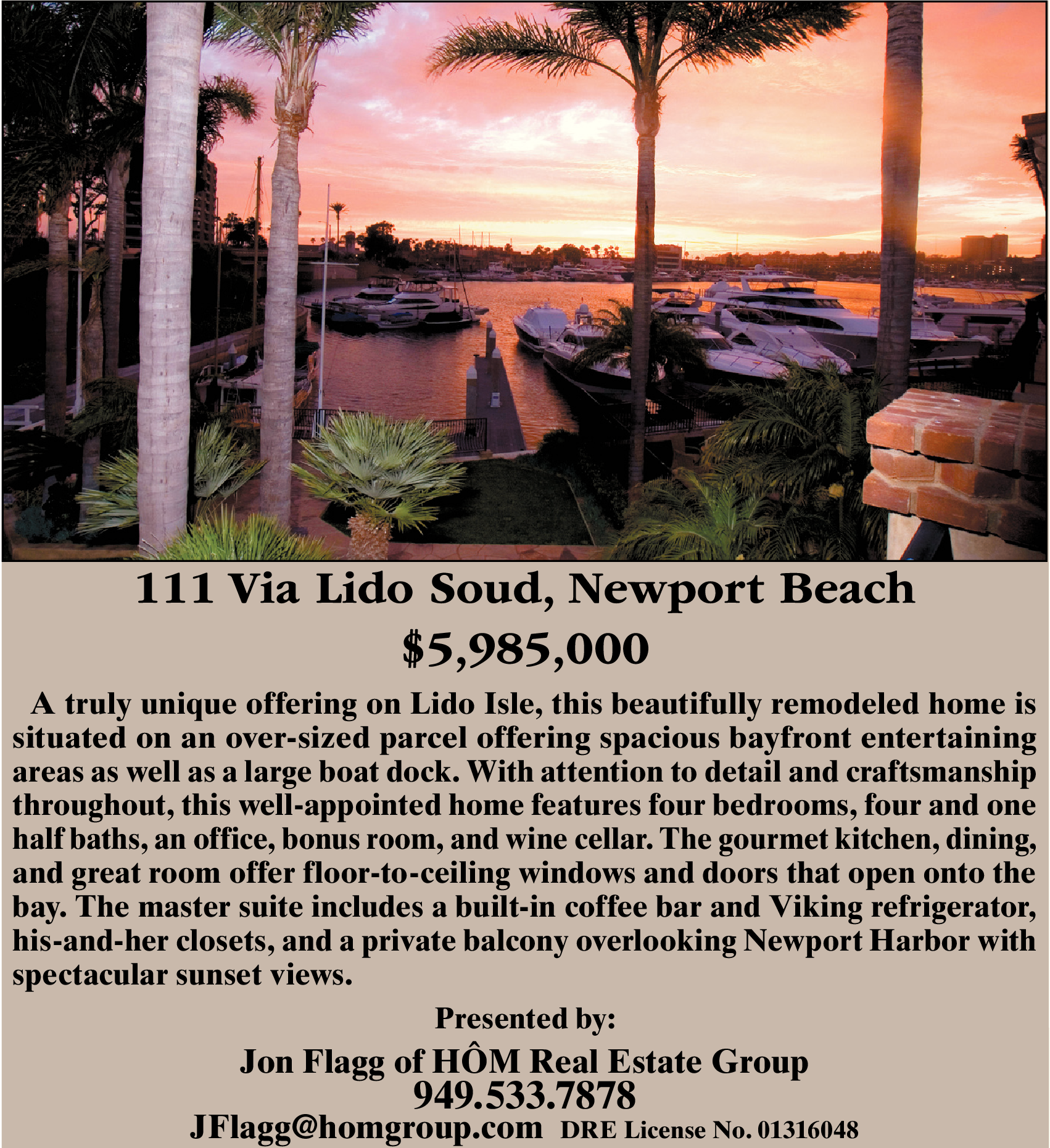 A truly unique offering on Lido Isle, this beautifully remodeled home is situated on an over-sized parcel offering spacious bayfront entertaining areas as well as a large boat dock. With attention to detail and craftsmanship throughout, this well-appointed home features four bedrooms, four and one half baths, an office, bonus room, and wine cellar. The gourmet kitchen, dining, and great room offer floor-to-ceiling windows and doors that open onto the bay. The master suite includes a built-in coffee bar and Viking refrigerator, his-and-her closets, and a private balcony overlooking Newport Harbor with spectacular sunset views.