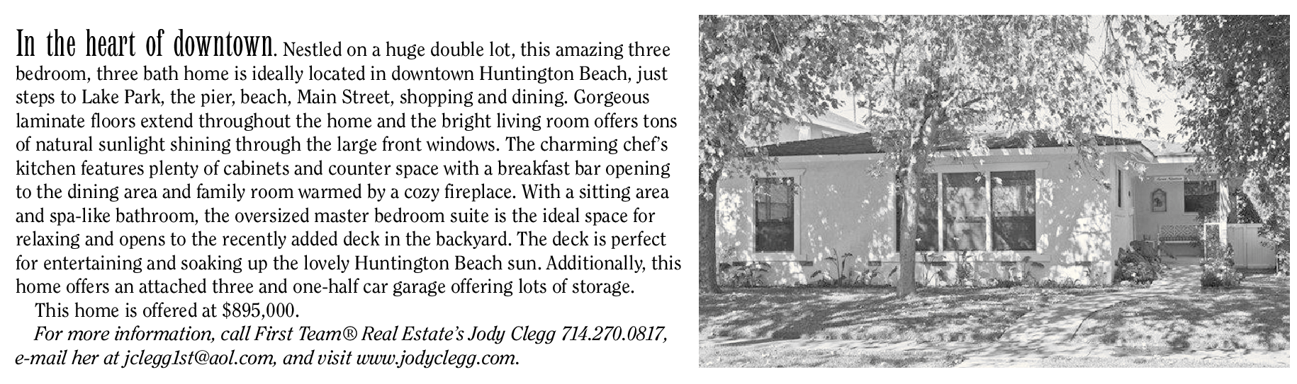 This home is offered at $895,000. For more information, call First Team® Real Estate’s Jody Clegg 714.270.0817, e-mail her at jclegg1st@aol.com, and visit www.jodyclegg.com.