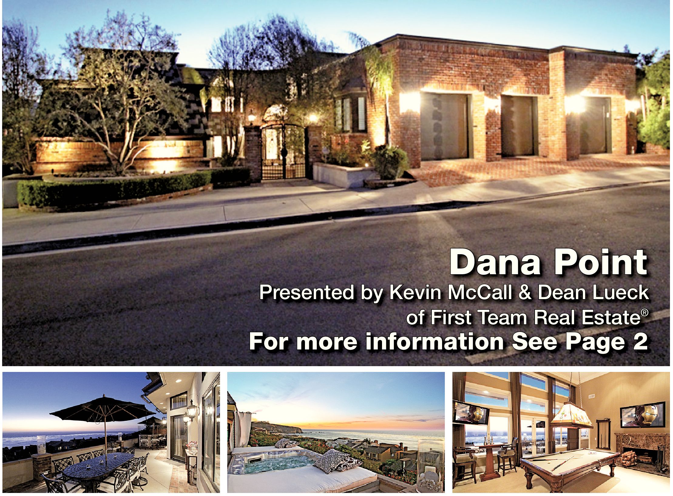 Dana Point Presented by Kevin McCall & Dean Lueck of First Team Real Estate ® For more information See Page 2
