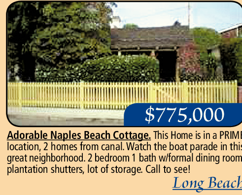 Adorable Naples Beach Cottage. This Home is in a PRIME location, 2 homes from canal. Watch the boat parade in this great neighborhood. 2 bedroom 1 bath w/formal dining room, plantation shutters, lot of storage. Call to see!