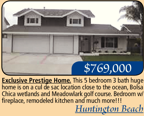 Exclusive Prestige Home. This 5 bedroom 3 bath huge home is on a cul de sac location close to the ocean, Bolsa Chica wetlands and Meadowlark golf course. Bedroom w/ fireplace, remodeled kitchen and much more!!!