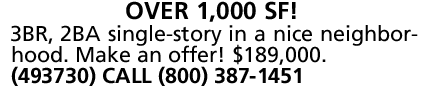 3BR, 2BA single-story in a nice neighborhood. Make an offer! $189,000.