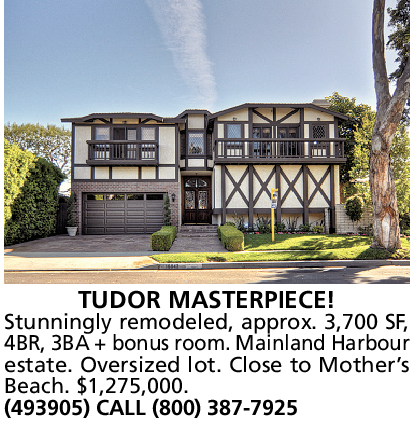 Stunningly remodeled, approx. 3,700 SF, 4BR, 3BA + bonus room. Mainland Harbour estate. Oversized lot. Close to Mother’s Beach. $1,275,000. (493905) CALL (800) 387-7925