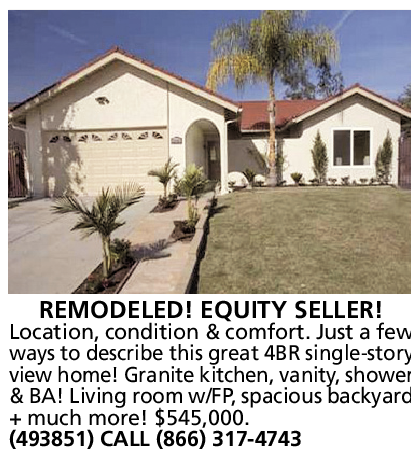 Location, condition & comfort. Just a few ways to describe this great 4BR single-story view home! Granite kitchen, vanity, shower & BA! Living room w/FP, spacious backyard + much more! $545,000. (493851) CALL (866) 317-4743