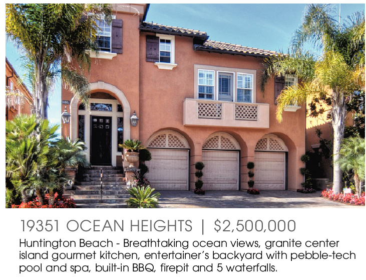 19351 OCEAN HEIGHTS | $2,500,000 Huntington Beach - Breathtaking ocean views, granite center island gourmet kitchen, entertainer’s backyard with pebble-tech pool and spa, built-in BBQ, firepit and 5 waterfalls.