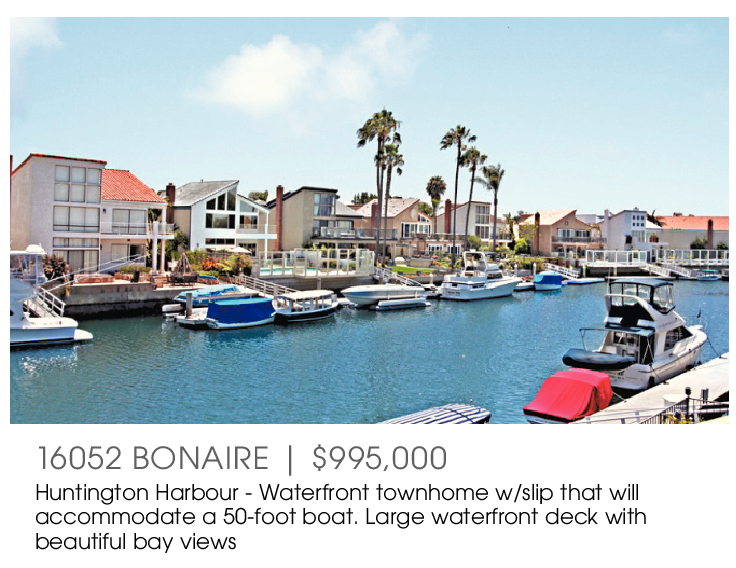 16052 BONAIRE | $995,000 Huntington Harbour - Waterfront townhome w/slip that will accommodate a 50-foot boat. Large waterfront deck with beautiful bay views