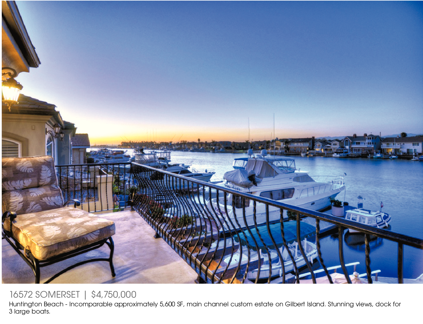 16572 SOMERSET | $4,750,000 Huntington Beach - Incomparable approximately 5,600 SF, main channel custom estate on Gilbert Island. Stunning views, dock for 3 large boats.