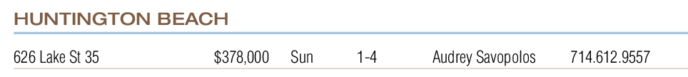 626 Lake St 35 $378,000 Sun 1-4 Audrey Savopolos 714.612.9557