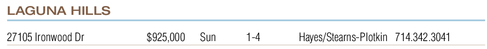 27105 Ironwood Dr $925,000 Sun 1-4 Hayes/Stearns-Plotkin 714.342.3041