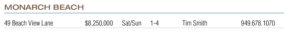 49 Beach View Lane $8,250,000 Sat/Sun 1-4 Tim Smith 949.678.1070