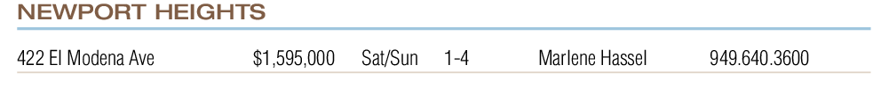 422 El Modena Ave $1,595,000 Sat/Sun 1-4 Marlene Hassel 949.640.3600