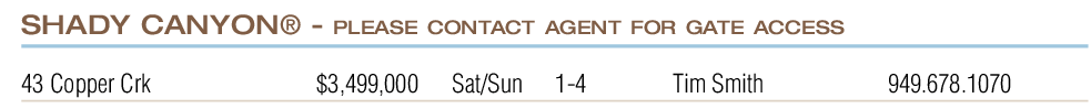 43 Copper Crk $3,499,000 Sat/Sun 1-4 Tim Smith 949.678.1070