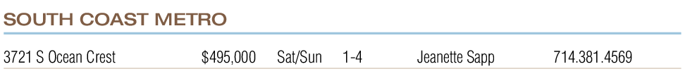 3721 S Ocean Crest $495,000 Sat/Sun 1-4 Jeanette Sapp 714.381.4569