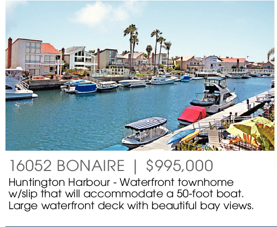 16052 BONAIRE | $995,000 Huntington Harbour - Waterfront townhome w/slip that will accommodate a 50-foot boat. Large waterfront deck with beautiful bay views.