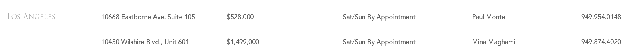 Los Angeles 10668 Eastborne Ave. Suite 105 $528,000 Sat/Sun By Appointment Paul Monte 949.954.0148