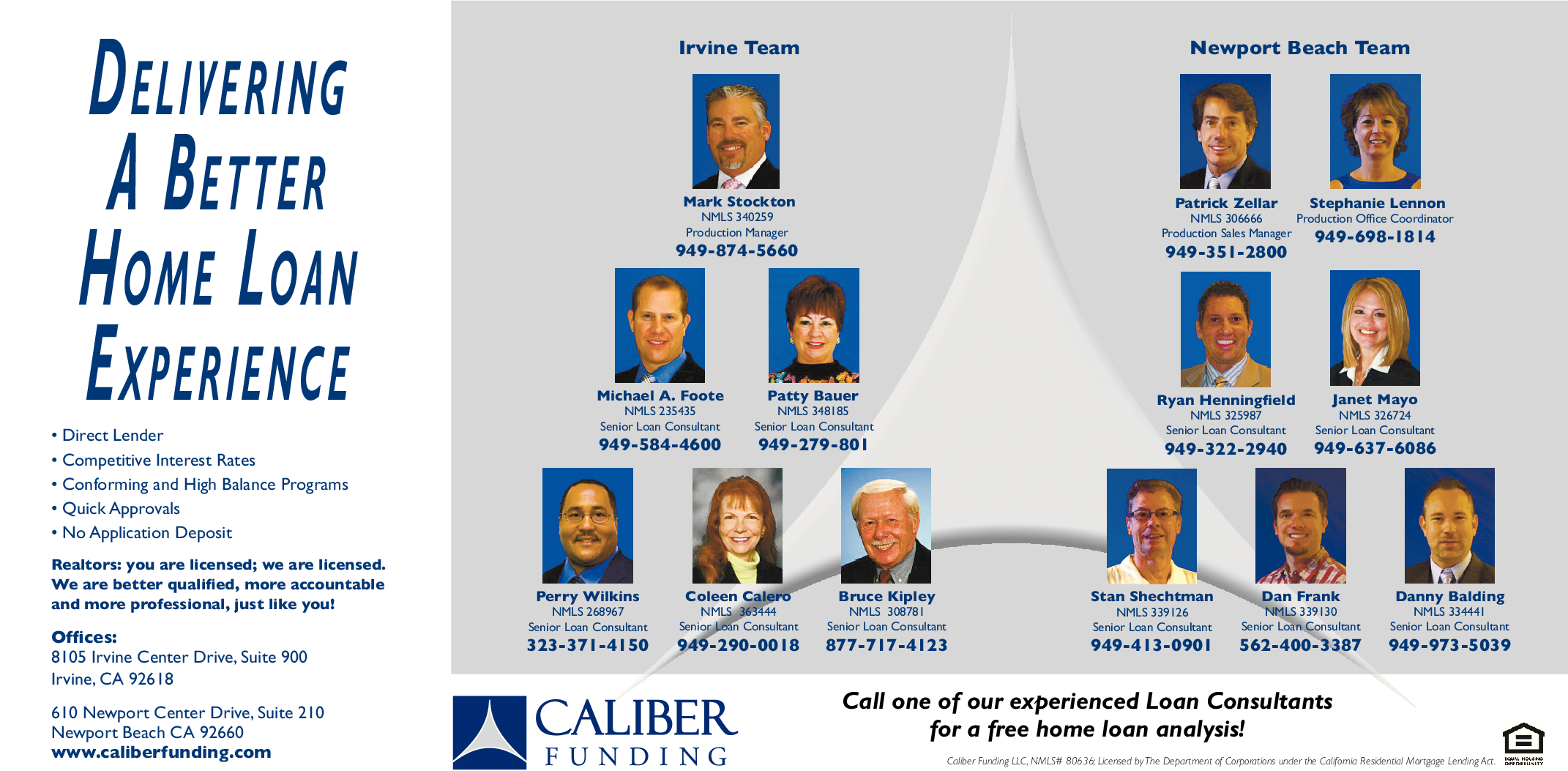 Offices: 8105 Irvine Center Drive, Suite 900 Irvine, CA 92618 610 Newport Center Drive, Suite 210 Newport Beach CA 92660 www.caliberfunding.com