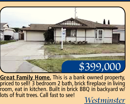 Great Family Home. This is a bank owned property, priced to sell! 3 bedroom 2 bath, brick fireplace in living room, eat in kitchen. Built in brick BBQ in backyard w/ lots of fruit trees. Call fast to see!