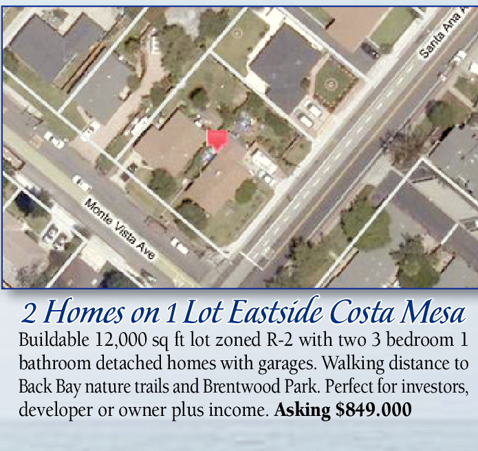 Buildable 12,000 sq ft lot zoned R-2 with two 3 bedroom 1 bathroom detached homes with garages. Walking distance to Back Bay nature trails and Brentwood Park. Perfect for investors, developer or owner plus income. Asking $849.000