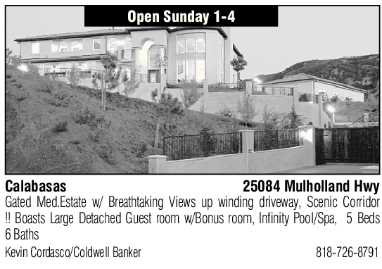 Calabasas 25084 Mulholland Hwy Gated Med.Estate w/ Breathtaking Views up winding driveway, Scenic Corridor !! Boasts Large Detached Guest room w/Bonus room, Infinity Pool/Spa, 5 Beds 6 Baths Kevin Cordasco/Coldwell Banker 818-726-8791