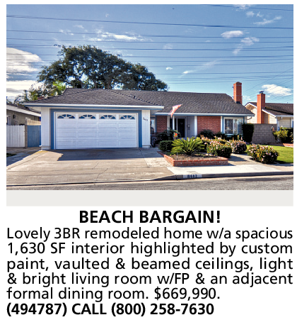 Lovely 3BR remodeled home w/a spacious 1,630 SF interior highlighted by custom paint, vaulted & beamed ceilings, light & bright living room w/FP & an adjacent formal dining room. $669,990. (494787) CALL (800) 258-7630