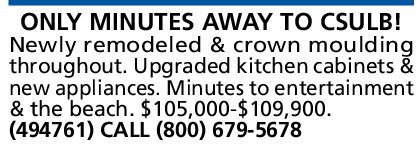 Newly remodeled & crown moulding throughout. Upgraded kitchen cabinets & new appliances. Minutes to entertainment & the beach. $105,000-$109,900. (494761) CALL (800) 679-5678