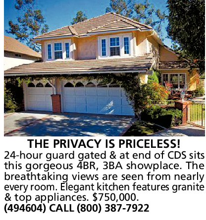 24-hour guard gated & at end of CDS sits this gorgeous 4BR, 3BA showplace. The breathtaking views are seen from nearly every room. Elegant kitchen features granite & top appliances. $750,000. (494604) CALL (800) 387-7922