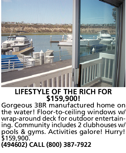 Gorgeous 3BR manufactured home on the water! Floor-to-ceiling windows w/ wrap-around deck for outdoor entertaining. Community includes 2 clubhouses w/ pools & gyms. Activities galore! Hurry! $159,900. (494602) CALL (800) 387-7922