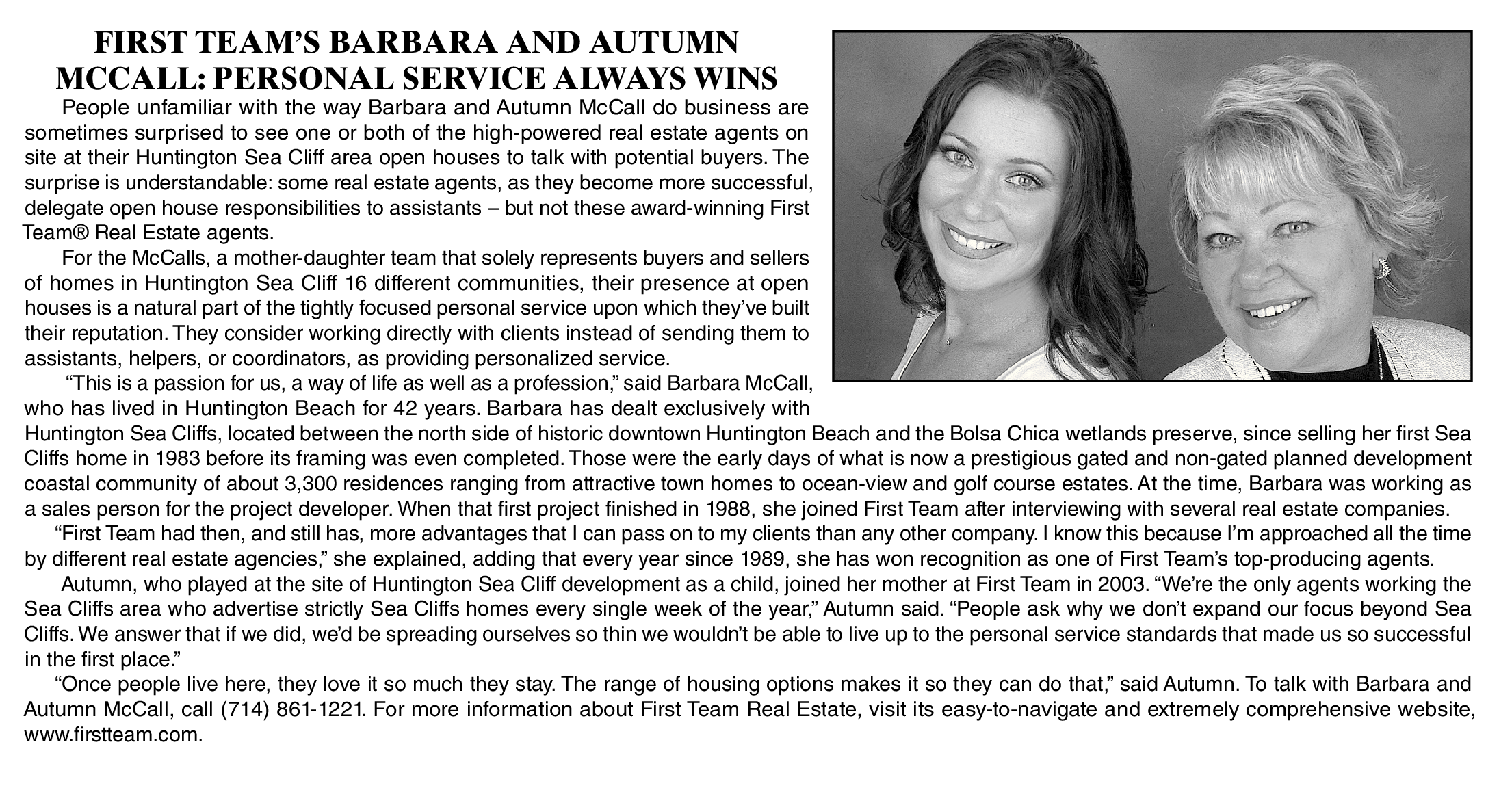 FIRST TEAM’S BARBARA AND AUTUMN MCCALL: PERSONAL SERVICE ALWAYS WINS