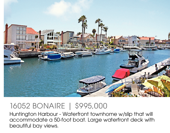 16052 BONAIRE | $995,000 Huntington Harbour - Waterfront townhome w/slip that will accommodate a 50-foot boat. Large waterfront deck with beautiful bay views.