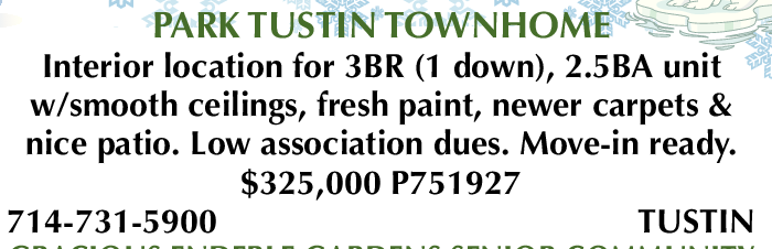 $325,000 P751927 714-731-5900 TUSTIN GRACIOUS ENDERLE GARDENS SENIOR COMMUNITY