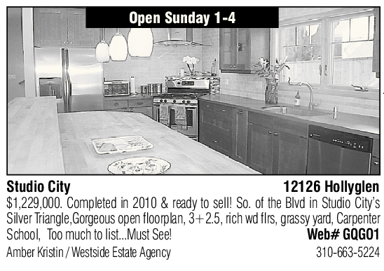 Studio City 12126 Hollyglen $1,229,000. Completed in 2010 & ready to sell! So. of the Blvd in Studio City’s Silver Triangle,Gorgeous open floorplan, 3+2.5, rich wd flrs, grassy yard, Carpenter School, Too much to list...Must See! Web# GQGO1 Amber Kristin / Westside Estate Agency 310-663-5224