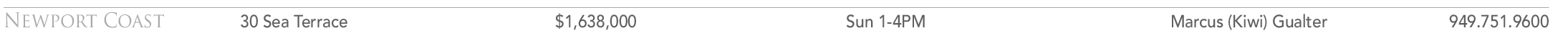 Newport Coast 30 Sea Terrace $1,638,000 Sun 1-4PM Marcus (Kiwi) Gualter 949.751.9600