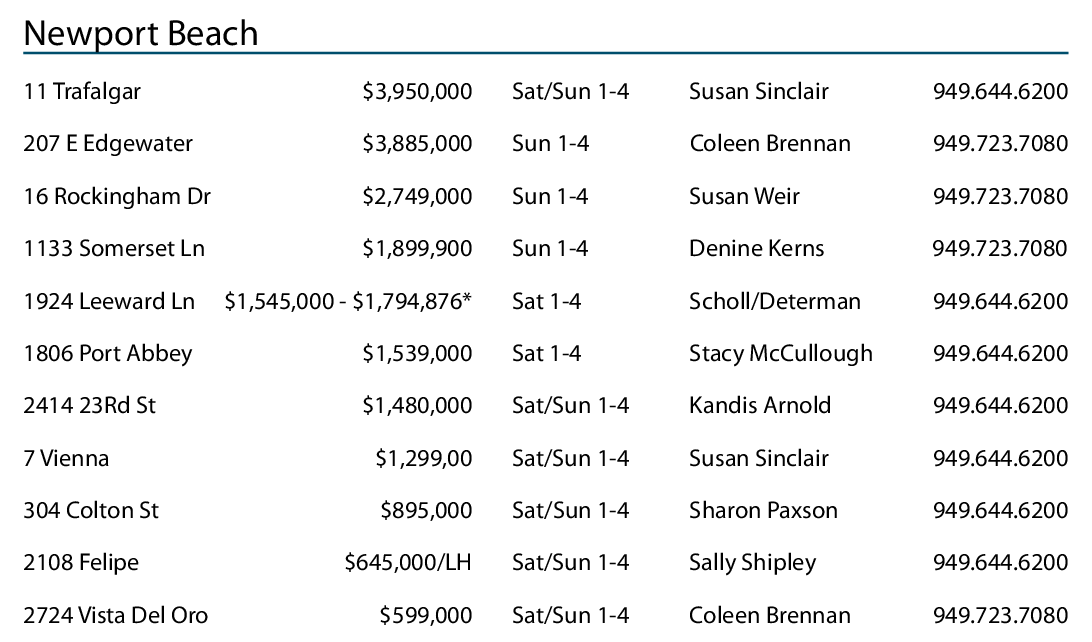 304 Colton St $895,000 Sat/Sun 1-4 Sharon Paxson 949.644.6200
