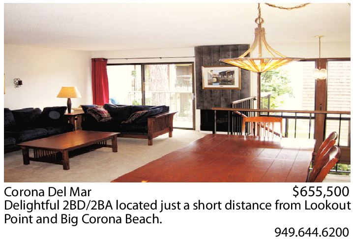 Corona Del Mar $655,500 Delightful 2BD/2BA located just a short distance from Lookout Point and Big Corona Beach.