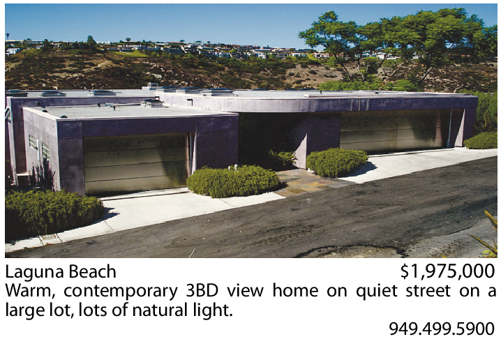 Laguna Beach $1,975,000 Warm, contemporary 3BD view home on quiet street on a large lot, lots of natural light.