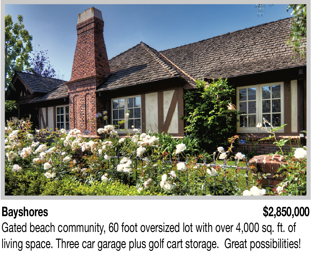 Bayshores $2,850,000 Gated beach community, 60 foot oversized lot with over 4,000 sq. ft. of living space. Three car garage plus golf cart storage. Great possibilities!