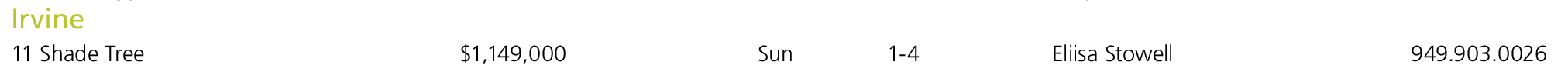 Irvine 11 Shade Tree $1,149,000 Sun 1-4 Eliisa Stowell 949.903.0026