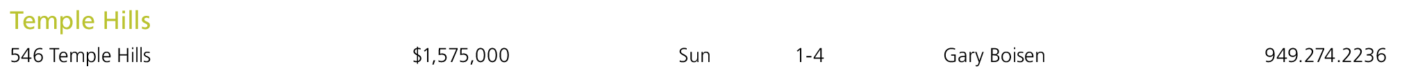 Temple Hills 546 Temple Hills $1,575,000 Sun 1-4 Gary Boisen 949.274.2236