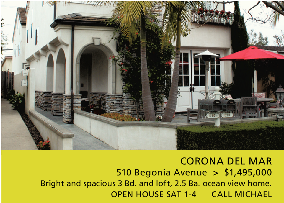 CORONA DEL MAR 510 Begonia Avenue > $1,495,000 Bright and spacious 3 Bd. and loft, 2.5 Ba. ocean view home.