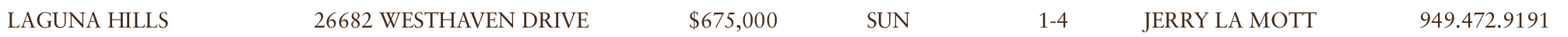 LAGUNA HILLS 26682 WESTHAVEN DRIVE $675,000 SUN 1-4 JERRY LA MOTT 949.472.9191